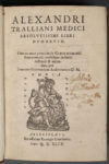 [Livre du XVIe siècle]. [Médecine]. ALEXANDRE DE TRALLES. Alexandri Tralliani medici absolutissimi Libri duodecim. [une ligne retirée] Omnes nunc primum de graeco accuratissime conversi… Argentorati, ex offician R. Guedonis, 1549. Petit in-8,...