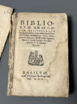 Seirach Sapientiam, Sosannae & draconis Exempla, Maccabaeorum libros tres & Iosephum de Maccabaeis. Basileae, apud Nicolaum Brylingerum, 1550. In-8, [1] f. (titre), 567 p., [3] f. (index et 2 f. bl.), [sign. a-z 8, Aa-Nn 8], broché (anciennement relié avec tranches dorées), couv. marbrée XIXe s. (débroché, couv. très usée ; mouillure aux 3 premiers f. dont titre défraîchi). Quatrième et dernier tome de cette édition en grec et en latin sur 2 colonnes. Initiales gravées sur bois. Exemplaire réglé. (USTC 616548 ; Bible Paris 1474).
