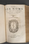volume in-folio, [4] f., VII p., p. XI-XXXI, 678 p., [1] f. blanc, [78] f. ; [14] f., p.1-392, 411-745, [1] f. blanc, [51] f., demi-basane fauve vers 1900, dos à 5 nerfs ornés, pièce de titre noire (défauts dont accrocs aux coiffes, petits trav. de vers aux plats, coupes frottées ; rares défauts et accidents marginaux, les marges des 10 derniers f. réparées ; soulignements anciens sur l'ensemble du volume ; 12 ff. en déficit). Nouvelle édition de cette traduction française qui fit longtemps autorité, due à l'écrivain protestant Antoine Du Pinet. Chaque partie est suivie d'un copieux index. Bandeaux et initiales gravés sur bois. Il manque 2 feuillets liminaires de la première partie (*5 et 6), et dans la deuxième partie, 10 feuillets (Mm 5 et 6, Nn 1-6, Oo1, et i 4 blanc). L'exemplaire a été amplement souligné et annoté. (USTC 30327 et 56144).