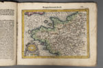sans couverture (état d'usage, accidents et salissures). Intéressant fragment d'un important atlas. Il renferme un texte concernant l'état politique de la France, suivi de la description de ses provinces, et est illustré de 14 cartes à pleine page, gravée sur cuivre et coloriées à l'époque : France générale ; Bretagne, Normandie, Beausse ; Aquitaine ou Guienne ; Provence ; Picardie & Champagne ; Île-de-France ; comté de Boulogne ; duché d'Anjou ; duché de Berry ; comté de Poitou ; duché de Lorraine (en 2 cartes, une déchirée sans manque) ; duché de Bourgogne ; comté de Bourgogne. (Van der Krogt 3, 351).