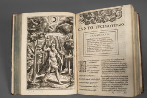 roulette dorée aux coupes, tranches bleues (rel. frottée, défauts dont pièce de titre manquante, attache faible des plats, garde sup. mq. ; trav. de vers touchant qq. lettres et 2 fig.sans gravité ; accroc touchant qq. lettres p. 111). Edition contenant une biographie de l'auteur, ainsi que le résumé de chaque chant par Bartolomeo Barbato, les notes de Scipio Gentile et Giulio Guastavino, et une notice historique. Elle est illustrée d'un titre gravé à cadre architectural comprenant une vue de Jérusalem, d'un portrait de l'auteur et de vingt compositions, le tout gravé sur cuivre à pleine page. Ornements et initiales gravés sur bois. Provenance : Borges (signature moderne au titre) ; mention d'achat à Londres en mai 1826.