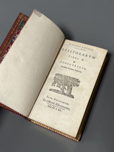 PLINE LE JEUNE. C. Plinii Caecilii Secundi Epistolarum libri X. & Panegyricus. Accedunt variantes lectiones. Lugd. Batavorum, ex Off. Elseviriorum, 1640. In-12, [12] f., 414 (i.e. 404) p., [14] f., maroquin rouge, dos à 5 nerfs, auteur, titre,...