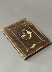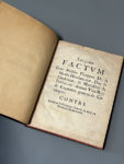 roy au parlement de Grenoble. S.l., s.n. [Paris, 1648 ou 1649]. 4 parties en un volume in-4, basane brune XIXe s., dos à 5 nerfs, titre et date dorés, caissons bordés d'un triple filet doré, plats décorés d'un double cadre de deux filets dorés avec monogramme répété aux angles et armes rapportées au centre, tranches rouges (frott., trav. de vers au plat sup., armes brûlées, titre bruni, mouillures). On trouve à la fin de ce volume une supplique de La Mothe-Houdancourt au Parlement, paginée 5-27. Les armes rapportées aux plats sont brulées, elles portent 3 trèfles et un croissant en chef, et ont dû être récupérées sur une ancienne reliure. Les monogrammes sont ceux de La Mothe-Houdancourt.