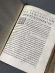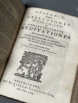 de titre frottée, 3 coins émoussés ; Edition collective d'ouvrages de Descartes ; la composition des exemplaires varie, d'autant que certaines des pièces qui les constituent se vendaient séparément. Celui-ci de compose de : - Passiones animae… nunc autem in exterorum gratiam, Latina civitate donatae. Ab. H.D.M. i.v.l. [i.e. Henri Desmarets]. 1664. [12] f., 92 p., [2] f. (index). - Meditationes de prima philosophia… 1670. [6] f., p. 105-191. [Suivi de] : Synopsis sex sequentium meditationum (sans page de titre particulière). 104 p. - Appendix continens objectiones… (cette page de titre peut-être mal placée). 1670.164 p. - Epistola Renati Des Cartes… (faux-titre). 88 p. D'ordinaire cette édition est agrémentée d'un portrait des Descartes qui manque ici, l'on y a inséré un portrait gravé en 1835 par L. Butavand. Provenance : Antoine Guillaume d'Orbigny (ex-libris manuscrit au titre), probablement Antoine-Guillaume, chevalier, seigneur d'Orbigny & de Sermizelles, lieutenant général d'épée au bailliage d'Avallon, né en 1661, mort en 1730.