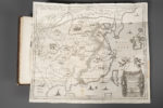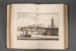 p., [4] f. (index, placement des pl.), fr., pl., fig., basane havane époque, dos à 6 nerfs, titre doré, caissons oréns, tranches jaspées (frottements, coiffes arrachées, 2 coins usés ; front. et titre remontés, pl. un peu brunies, déch. touchant qq. lettres p.89 ; il manque 4 f. liminaires (dédicace), le portrait de l'auteur, et une planche). Première édition latine de l'une des rares sources sur la Chine qui n'ait pas été rédigée par un jésuite. L'illustration entièrement gravé sur cuivre se compose d'un frontispice, du portrait de l'auteur (qui manque ici), d'une carte dépliante, de 34 (ici 33) planches doubles et de 109 vignettes dans le texte. (Cordier, Bibl. Sinica 2346-7).