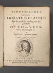 [Emblèmes]. JANSEN (Antoni) ; VAN VEEN (Otto). Zinnebeelden, getrokken uit Horatius Flaccus... t'Amsterdam, by J. Dankerts, 1683. In-4, [4] f., 205 p., [1] f., fig., velin ivoire époque, dos lisse, titre à l'encre (dos ordinairement grisé ; qq....