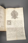 titre maroquin rouge, caissons ornés, roulette dorée aux coupes, tranches rouges (rousseurs). On trouve, relié en fin de volume, une proclamation de Marie-Thérèse d'Autriche à propos de la tenue d'assemblées en Flandres (Bruxelles, Fricx, 1754, 9 p. in-folio, pliées).