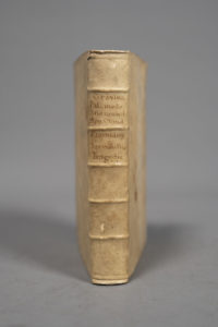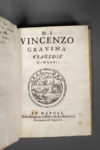 GRAVINA (Vincenzo). Tragedie cinque. In Napoli, nella stamparia de Felice Mosca, 1712. Petit in-8, [14] f. (le 1er blanc), 348 p., parchemin ivoire époque, dos à 5 nerfs, titre à l'encre (légers frott. au plat sup. ; taches claires au titre,...