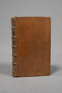 inconnuë jusques à present aux peuples de l'Europe. A Amsterdam, aux dépens d'E. Rogern 1716. Deux tomes en un volume in-12, 333-289 p. (dont les front.), fr., pl., veau fauve glacé époque, dos à 5 nerfs, pièces de titre et de tomaison maroquin rouge et havane, caissons ornés aux petits fers, filet à froid bordant les plats, roulette dorée aux coupes et chasses, tranches rouges (accroc à la coiffe de queue, 2 coins émoussés, qq. lég. traces digitales). Nouvelle édition de ce récit de voyage imaginaire représentatif de la littérature utopique. Elle est illustrée de 10 planches gravées sur cuivre (un frontispice répété et 8 planches). Sans le catalogue du libraire souvent relié à la fin. Ex-libris manuscrit daté de 1802 et annotations bibliographiques sur une garde.