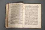 Mazière et J.-B. Garnier, 1729. In-4, [4] f., LXIX p., [1] f. (approb.), 401 p., fr., veau havane marbré, dos à 5 nerfs, pièce de titre maroquin grenat, caissons oréns, triple filet doré bordant les plats, armes dorées au centre,double filet doré aux coupes, tranches rouges (défauts dont coiffes arasées, coins usés, fentes aux mors ; ff. liminaires un peu défraîchis et aux marges renouvelées à l'époque, taches et mouillure marginale sporadiques, dernier f. doublé). Edition originale de cette biographie apologétique. Elle est illustrée d'un frontispice gravé sur cuivre par J. B. Scotin montrant la vénérable en prière, d'un bandeau aux armes gravé sur cuivre par le même en tête de la dédicace à la reine, de bandeaux, initiales et culs-de-lampe gravés sur bois. Exemplaire d'exception qui fut relié à l'époque, par erreur, aux armes de madame de Pompadour. Il provient de Paul Collin (1707-1775), intendant et exécuteur testamentaire de Madame de Pompadour, procureur au Châtelet, contrôleur de l'Ordre de Saint-Louis en 1751, trésorier général de la Vénerie en 1761. Celui-ci a relaté le curieux parcours du livre dans une note autographe sur la première garde : « 25 avril 1763 Madame de Pompadour m'a rendu ce livre qui a été relié à ses armes par inadvertance quoiqu'il m'appartienne. Collin ». La signature de Collin figure également en tête de la page de titre, et son ex-libris armorié gravé au contreplat supérieur. Le fer de la reliure n'est pas reproduit par Olivier, Hermal et de Roton qui présentent un modèle approchant planche 2399. Il a été ajouté sur une garde, agrafée, une carte postale du tombeau de Marguerite-Marie. Ex-libris manuscrit moderne et un autre sur étiquette typogr. sur les gardes. Des repères au crayon et à la sanguine témoignent d'un lecture attentive ancienne.