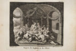 plats, filet doré aux coupes, roulette intérieure, tranches dorées (qq. frott., petite piq. de ver en tête du dos, rousseurs marginales, petite tache d'encre sur garde sup. et en marge du front.). Second tirage de la célèbre illustration du Régent, qui parut initialement en 1718. Elle est illustrée d'un frontispice d'Antoine Coypel sur lequel figure encore la date de 1718, et de 28 figures hors-texte (dont 13 à double page) gravées par Benoît Audran d'après les compositions de Philippe d'Orléans, de la figure dite des « petits pieds », attribuée au comte de Caylus, et de 4 culs-de-lampe de Cochin exécutés spécialement pour cette édition. Titre en rouge et noir avec vignette gravée. Un feuillet blanc liminaire signalé par Cohen n'a pas été conservé. (Cohen, 652).