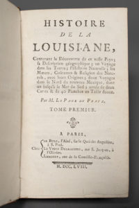[Americana]. LE PAGE DU PRATZ (Antoine-Simon). Histoire de la Louisiane, contenant la découverte de ce vaste pays ; sa description géographique ; un voyage dans les terres ; l'histoire naturelle ; les moeurs, coutumes & religion des naturels, avec...