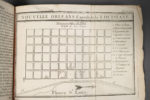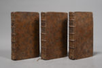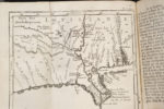 leurs origines ; deux voyages dans le nord du Nouveau Mexique, dont un jusqu'à la mer du Sud… A Paris, chez De Bure, la Vve Delaguette, Lambert, 1758. 3 volumes in-12, veau havane moucheté époque, dos à 5 nerfs, pièces de titre maroquin grenat, tomaison frappée, caissons ornés, tranches rouges (défauts dont coins usés, trav. de vers en tête et que des dos, légères salissures, répar. en marge t.2 p.97). Edition originale de cette importante relation consécutive au séjour de l'auteur en Louisiane. Elle est illustrée de 2 cartes dépliantes, et de 40 planches, le tout gravé sur cuivre, dont un plan de la Nouvelle-Orléans, des représentations des arbres, de la faune, des populations et de leurs activités. Plan un peu usé en marge, la planche du supplicié t.2 p. 420 discrètement maculée. Provenance : Hureau de Livoy (ex-libris manuscrit daté de 1759).