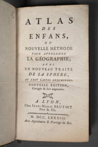 [Atlas]. ATLAS DES ENFANS, ou Nouvelle méthode pour apprendre la géographie, avec un nouveau traité de la sphère.... Nouvelle édition, corrigée & fort augmentée. A Lyon, chez J.-M. Bruyset, 1783. Deux parties en un volume in-12, XII-360-60 p.,...