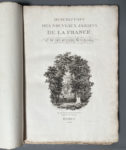 titre-fr., pl., demi-basane havane fin XIXe s., dos lisse, auteur, titre et filets dorés, toutes marges conservées (dos et coins frottés, un coin cassé, mouill. en marge pl. 61 et sporadique après la p. 196, taches sur la carte). Bel ouvrage amplement illustré à la gloire des parcs, château et jardins français les plus réputés sous le Premier Empire. Il comporte une carte, 2 plans hors-texte (Malmaison et Ermenonville) ; un titre gravé illustré d'une vignette, une vignette sur le titre imprimé, 112 vues de jardins hors-texte, 1 planche de topographie, 2 planches comprenant ensemble 8 figures à système montrant la transformation des jardins représentés ; toutes les vues et vignettes sont gravées sur acier d'après les dessins de Constant Bourgeois.