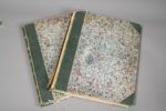 vert de l'époque (reliures usées et déboitées, l'une sans dos ; des planches brunies, rousseurs ; des pl. en déficit ; en l'état). Ouvrage illustré de planches gravées et à l'aquatinte tirées en couleurs, certaines rehaussées. Il doit comporter 96 planches dont deux frontispices ; cet exemplaire renferme 75 planches dont 2 frontispices, il manque notamment la planche des bains.