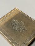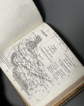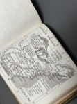 doré, filets et roulettes dorées, fleurons à froid, plats ornés d'un médaillon centre et d'une roulette en bordure, le tout à froid, et d'un filet et fleurons angulaires dorés, roulette dorée aux coupes et chasses, tranches dorées (dos et plat sup. insolés, accroc à la coiffe de queue, 3 coins émoussés). Ravissant atlas de poche peu commun. Il se compose de 2 feuillets d'avis, d'un frontispice gravé aux portraits de Mercator et Hondius, d'un titre gravé, de 30 cartes gravées sur acier, d'un feuillet de titre imprimé et d'un texte paginé [35]-60.