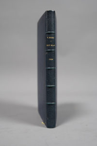 dorés, tête dorée, non rogné, couvertures conservées [Marius Michel] (petits frottements). Édition originale de cette pièce représentée pour la première fois le 8 novembre 1838, pour l'ouverture du Théâtre de la Renaissance. Exemplaire de Jules Noilly cité par Carteret (ex-libris monogrammé). Il est imprimé sur un beau papier vergé fin, portant sur certains feuillets un filigrane « TD ». Lavé et encollé, il a été enrichi à l'époque de la reliure par un feuillet portant la variante du titre à l'adresse de Delloye, et de Brockhaus et Avenarius à Leipzig. Collation détaillée : [3] f. (faux-titre, avec au v° l'adresse de l'imprimerie de Béthune et Plon ; titre de Delloye seul ; titre avec les deux adresses), p. [V]-XXI, [1] f. (« Ruy Blas » au r° et liste des personnages au v°), 250 p., [1] f. (table). (Carteret I, 409).
