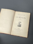VILLIERS DE L'ISLE-ADAM (Auguste de). La révolte. Drame en un acte et en prose. Paris, Lemerre, 1870. In-12, 58 p., [1] f. (achevé d'imprimer), cartonnage marbré à la Bradel début XXe s., titre doré en long au dos, non roogné (dos passé)....