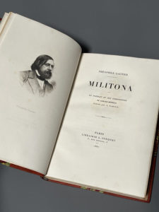 MOREAU. GAUTIER (Théophile). Militona. Paris, Libr. Conquet, 1887. In-8, demi-maroquin à coins brun-orangé, dos à 5 nerfs, caissons finement ornés avec fleurons mosaïqués, auteur, titre et date dorés, filet doré aux plats, tête dorée, non...