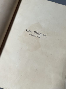 POE (Edgard Allan). Les poèmes d'Edgar Poe. Traduction de Stéphane Mallarmé, avec portrait et fleuron par Edouard Manet. Bruxelles, Deman, 1888. Grand in-8, cartonnage ivoire façon velin moderne, dos lisse, titre doré, couverture illustrée d'un...