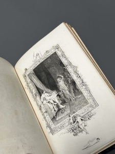 dentelle intérieure, tranches dorées sur témoins (fx-titre bruni, petites taches au titre, qq. rousseurs). Tirage limité à 300 exemplaires numérotés. Celui-ci, sur papier vélin, est justifié à la main par l'éditeur : « Exemplaire réservé pour Charles Hérissey [imprimeur de l'ouvrage], hommage de son bien dévoué A. Ferroud ». Il contient les illustrations en 3 états, et à la fin le prospectus. Elégante reliure bien exécutée et non signée.