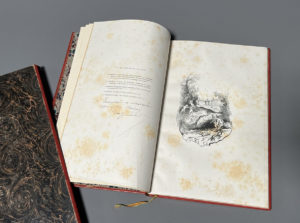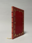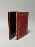 titre et date dotés, caissons ornés, délicat encadrement doré aux plats composé de filets et fleurons, double fiet doré aux coupes, contreplats bordés de maroquin décoré d'un jeu de filets et fleurons dorés, doublures et gardes de satin gris broché, seconde garde de papier marbré, tranches dorées sur témoins, couv. conservées, étui [Carayon] (frott. à l'étui ; rousseurs). Edition illustrée composée avec délicatesse. Tirage limité à 250 exemplaires : celui-ci sur papier de Chine, justifié à la main sans numéro comme « exemplaire de collaborateur offert à M. Hérissey », imprimeur du livre.