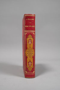 mosaïqué dans le goût oriental, bordé de pointillés dorés et avec 4 croissants et 4 étoiles dorés aux angles, auteur et titre dorés, filet doré et papier velours à motifs aux plats, tête dorée, non rogné, couv. conservée [Flammarion Vaillant] (petits accrocs au papier des plats). Bel ouvrage peu commun, illustré de 49 compositions en couleurs, dont 26 à pleine page, d'après Fausto Zonaro (1854 - 1929), peintre italien, établi à la cour du sultan Abdülhamid II à Istanbul dont il devint le peintre officiel. Tirage limité à 300 exemplaires : un des 258 sur papier vélin à la cuve de Blanchet & Kléber (n° 131), seul papier après 42 japon.