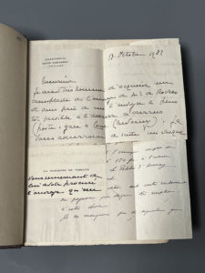 à 5 nerfs, titre et tomaison dorés, tête dorée. Important ouvrage dont le tirage a été limité à 300 exemplaires : celui-ci est le n° 287. Il est enrichi d'un portrait ancien de Vauban gravé sur cuivre par Voyer, d'une vue gravée coloriée du XIXe s. montrant la maison de Vauban, et de quelques pièces autographes modernes, dont un billet et une carte de visite autographes signés de la marquise de Vibraye, et une lettre autographe signée du comte Le Peletier d'Aunay, à propos de ce livre.