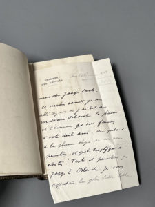 filet doré aux coupes, dentelle intérieure, tranches dorées sur témoins, couv. conservée, étui [Gruel] (dos passé brun). Édition originale : exemplaire tiré spécialement pour l'auteur, sur japon, numéroté 6. Enrichi de 2 lettres autographes signées de Maurice Barrès adressées à Jacques-Émile Blanche, d'un article de presse monté sur 4 feuillets, du même Blanche à propos de La colline inspirée. Provenance : Jacques-Émile Blanche (1861-1942), peintre et écrivain, par descendance, avec un envoi autographe signé de Barrès : « hommage d'admiration et d'amitié de son modèle ordinaire ».