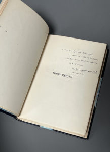 MAURIAC (François). Trois récits. Paris, Grasset (Bibliothèque Grasset), 1929. In-8, demi-chagrin à coins bleu nuit récent, dos à 5 nerfs, auteur et titre dorés, tête dorée, couv. et dos conservés. Édition collective parue la même année...