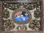 couleurs dorés sur tranche et roulés, deux cornes d'abondance dans les angles inférieurs. 29 x 39 cm. à vue, sous verre dans un cadre ancien en bois doré 37 x 46 x 5 cm. (dos habilement restauré).