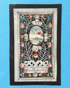 [Canivet]. « Mon amour fleurit pour toy / Et je ne vis plus pour moy ». XVIIIe s. Velin. 9x4,8cm.
