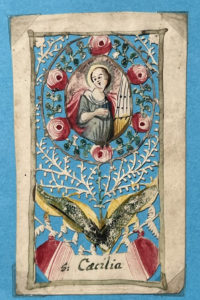 [Canivet]. SAINTE CÉCILE. XVIIIe s. Velin. 8,5x4,5cm.