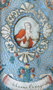 [Canivet]. S. Johannes Evangelistes. Avec portrait peint. XVIIIe s. 16 x 10 cm. à vue. Sous verre et cadre moderne.