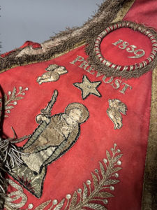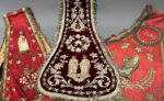 [Pièce textile liturgique]. TROIS ÉTOLES. XIXe siècle. Ensemble de trois étoles brodées, avec personnages figurés, l'une portant la date de 1839, les mentions « Prevost » et « Eccé Homo », une autre portant la mention « Prévots ». 161 x...
