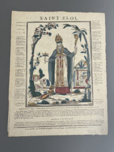 [Imagerie populaire]. SAINT ÉLOI. A Chartres, chez Garnier-Allabre. Gravure sur bois coloriée. 40x30 cm.