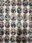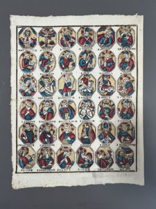 [Imagerie populaire]. 36 PETITES FIGURES DE SAINTS. Gravure sur bois coloriée. 38x30 cm.
