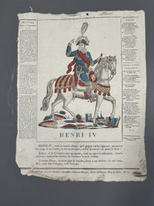 [Imagerie populaire]. HENRI IV. Chartres, chez Garnier-Allabre. Gravure sur bois coloriée. 39x30 cm.
