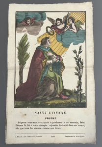 [Imagerie populaire]. SAINT ÉTIENNE. Lille, Castiaux, Blocquel. Gravure sur bois coloriée. 36x23 cm.