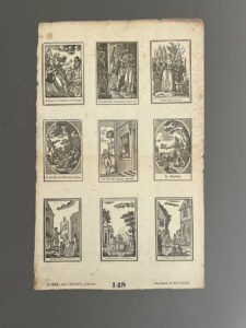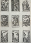[Imagerie populaire]. 9 PETITS BOIS profanes. Lille Castiaux, Blocquel. Gravure sur bois. 36x22 cm.