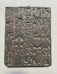 [Matrice sur bois]. [Cartes à jouer]. Planche d'un jeu de cartes à jouer. Matrice gravée sur bois, vers 1818. 37,5 x 29,5 x 4 cm. (piqûres de vers sans gravité sur la planche, travaux de vers avec lacunes au verso). Rarissime planche composée...