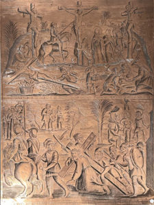 crucifix miracuieux de Burgues ». A Paris, chez La Roche, rue S./ Jacques à l'image S. Genevieve proche la fontaine St Severin. Sur l'autre face figurent deux compositions à mi-page illustrant le Chemin de Croix : « Le chemin du calvaire… » et « Qui vous a chargé de ce faix… », sans adresse. On joint : 6 planches de tirages modernes sur papier (3 de chaque face).