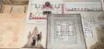 [Dessin]. [Architecture]. Lot de 17 dessins originaux, XVIIIe - début XXe s. 1. Plan d'une ferme dans le domaine de Bourrit… à M. le vicomte Ch. de Cambis. Par Reboul, architecte à Avignon, 1863. Encre de chine et lavis rose. Signé et daté en...