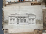 bas à droite. 37 x 57 cm. (déch. au titre). 2. Deux portiques. Encre de chine et lavis de gris. XVIIIe s. 37 x 12 cm. 3. Ensemble de deux dessins probablement destinés à des frontispices pour des livres d'architecture. Encre et lavis. Italie, XVIIIe s. Chaque env. 34 x 22 cm. (rousseurs, accrocs en bordure). 4. Alcôve avec un lustre suspendu. Projet d'illustration d'un ouvrage d'architecture. Encre noire et lavis de bistre. XVIIIe s. 29 x 20 cm. 5. Péristyle dans le goût de Piranese. Encre de Chine et lavis, rehauts d'encre brune. XVIIIe s. 24 x 36 cm. 6. Elévation et coupe d'un projet de galerie. Mine de plomb et lavis d'encre sur carton. XIXe s. Deux pièces, chacune de 39 x 58 cm. (salissures). 7. Elévation d'un tribunal d'arrondissement. Encre et lavis. XIXe s. 34 x 57 cm. 8. Projet de salle de château, avec cheminée ornée de motifs cynégétiques. Encre, crayon et aquarelle sur caton (accidents). 46 x 55 cm. Par Paumier, élève de M. Deglane. 9. Projet d'hôpital. Encre rouge et sanguine sur carton. 1913. 44 x 48 cm. (plis). Par Paumier. 10. Plan d'un édifice carré avec chapelles et amphithéâtre. Encre de Chine et lavis. XIXe s. (fentes aux plis). 74 x 86 cm. 11. Elévation d'une pyramide servant de mausolée dans le genre antique. Encre et lavis brun, rehauts de blanc. XVIIIe s. 31 x 28 cm. (accroc au titre). 12. Décor intérieur dans le style de l'Antiquité. Gouache sur papier. XIXe s. 30,5 x 48 cm. 13. Décor intérieur dans le style de l'Antiquité. Gouache sur papier. XIXe s. Motif non terminé, peut-être reconstitution. 37 x 53 cm. 14. Plan d'un tribunal. Encre sur papier gris. Début XXe s. 44 x 44 cm. (Déchirure réparée). 15. Plan d'un hôpital. Encre et aquarelle sur papier gris. Début XXe s. 48 x 64 cm. 16. Plan d'un musée. Encre noire et lavis. Début XXe s. 53 x 58 cm.