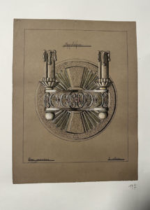 [Dessin]. [Ferronnerie]. Stephanus Emil MAIER (1906-1982). Exceptionnel ensemble de projets manuscrits, pour des ouvrages de ferronnerie d'art : portes, balcons, serrures, mobilier, luminaires ; une planche montre une chambre pour Isabelle de France,...