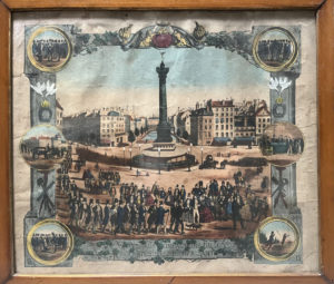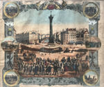 [Gravure]. [Compagnonnage]. Honneur au devoir. [Vue de la colonne de Juillet place de la Bastille, dans un encadrement à motifs symboliques et orné de 6 scènes en médaillons]. Dédié aux maréchaux compagnons du devoir par...