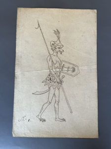 [Dessin. Grotesque]. Album de 74 dessins originaux offrant des personnages et scènes dans le style grotesque. France, vers 1800. Chaque feuille dessinée à l'encre sur papier, d'env. 37 x 24 cm., dont 3 doubles (qq. pièces tachées). On trouve à...