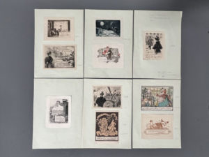 [Gravure]. [Uzanne]. Ensemble de 16 cartes de visites ou cartes de vœux, gravées, dont 2 pour Joseph Uzanne et 14 pour Octave Uzanne. 1890-1905. L'on relève les noms des graveurs et illustrateurs Henri Guérard, Nicolas-Frédéric Massé,...
