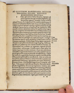 [À l'explicit :] Finis. // Opusculum hoc de felicitate luculentum impressoria // Caligulæ de Bazaleris Bononiæ incude egregiis // his caracteribus excussum Anno salutis Millesi//mo quadringentesimo nonagesimo quinto Calendis // aprilibus [Bologne, Caligula de Bazaleris, 1495]. In-8° (148 x 201 mm), demi-chagrin brun, dos à nerfs orné (reliure mi-XIXe s.).